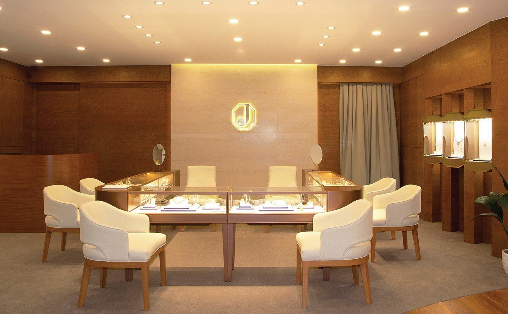 Jewelmer required high-end color specific finishes and specialized lighting fixtures in order to highlight their premium jewelry.